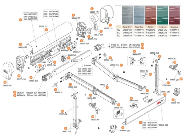 F45 TiL Polar White 450-550 kazettás naptető alkatrész és tartozék