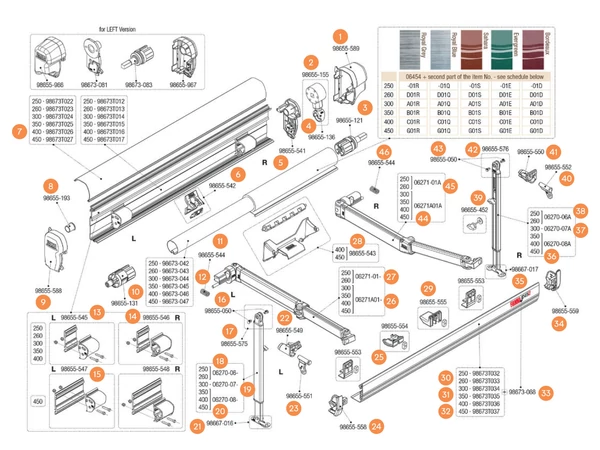 F45 Titanium 250-450 kazettás naptető alkatrész és tartozék: