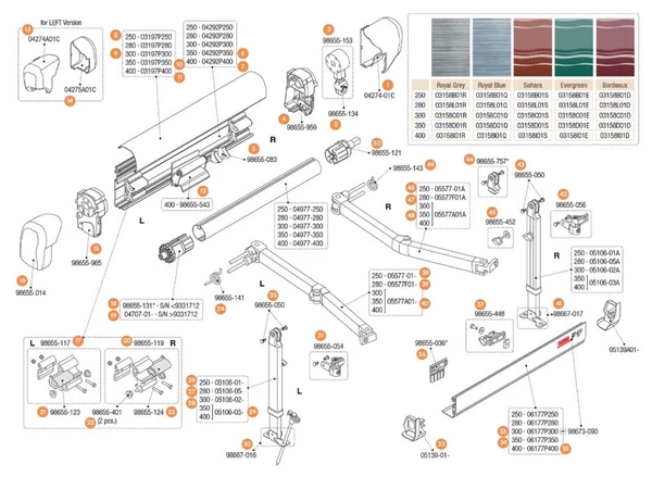 F45 i 250-400 kazettás naptető alkatrész és tartozék