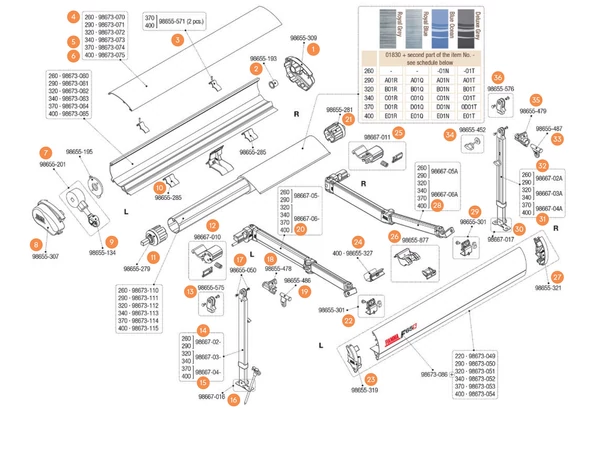 Az F65 S Polar White 260-400 kazettás naptető alkatrész és tartozék beazonosítása a pozíció vagy a cikkszám alapján lehetséges, amennyiben nem található a képen (nincs meghatározható pozíció és a cikkszám sem beazonosítható), akkor  ellenőrizze a következőket: Pontosan ehhez a modellhez keres alkatrészt? Talán régebbi változat, és már nem elérhető! Módosított, helyettesítő alkatrész van/nincs!? Csak a tartalmazó részegységgel rendelhető!? Ez egy újabb modell, esetleg nincs a listában! ​Tévedés, műszaki változtatás joga fenntartva!