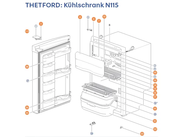 THETFORD Hűtőszekrény N115 alkatrészek