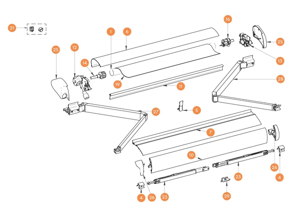 | 8 | Napvédő ház alsó rész 400/450/500/550 cm-es árnyékolóhoz 12 V-os motorral |