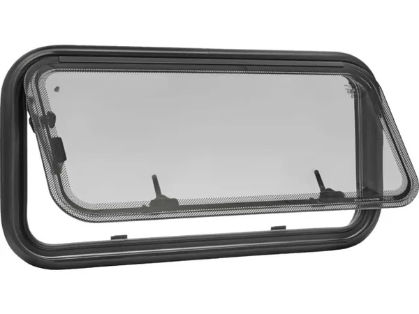 Duplaüveges, alumíniumból készült kerettel. Az ablak külső, "privacy black" felülete megfelelő szigetelést és védett magánszférát biztosít. Lakókocsikhoz és - autókhoz egyaránt alkalmas.