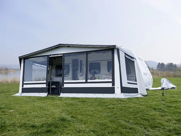 Magas minőségű poliészterből készült elősátor akár rövid nyaralásokhoz, akár letelepítéshez is. A terméket modern dizájn jellemzi: megjelenésében a fehér szín dominál, de fekete dekorelemek is megjelennek rajta, ezeket a ponyva szürke szélfogó köténye teszi igazán letisztulttá. A sátor magas szintű felszereltséggel, hatalmas ablakokkal, szúnyoghálóval és függönyökkel rendelkezik.