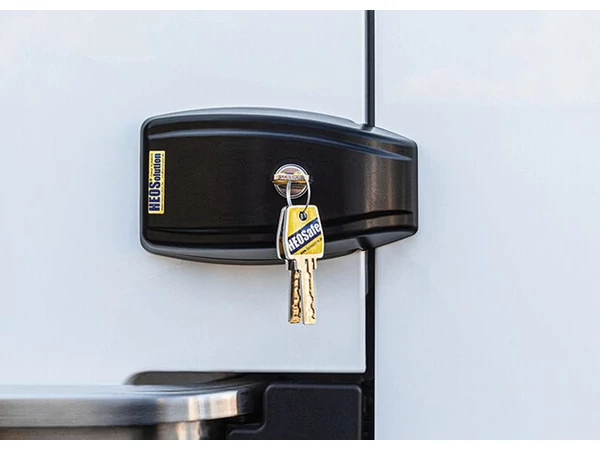 3. Amikor a járműben tartózkodik, a menekülőajtókat tilos kívülről HEOSafe®-fel biztosítani, mert a külső zárak belülről nem nyithatók.