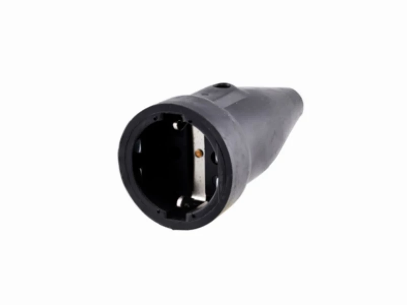 Lengő dugaljzat 250 V, gumiházas, fekete színben.