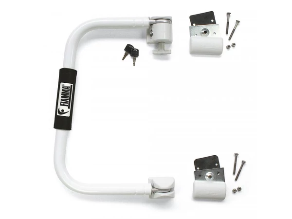 Ellenálló alumíniumból készült biztonsági ajtózárunkat puha fogódzkodó felülettel ellátott kapaszkodóval együtt ajánljuk. Nyitott állapotában segíti a lakójárműbe és mobilházba történő egyszerű be- és kilépést, zárt helyzetében lopásgátló eszközként funkcionál. Jobb- és baloldalra egyaránt felhasználható. A csomagban megtalálható minden, ami az ajtózár és kapaszkodó egyszerű felszereléséhez szükséges.