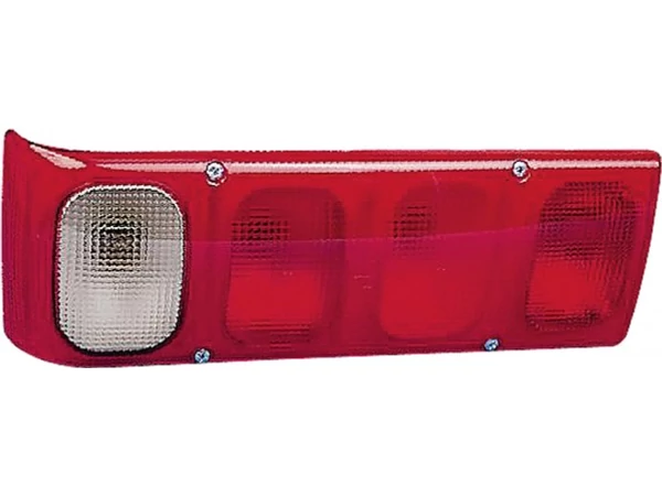 Index-fék-helyzetlámpa ködfénnyel - kétoldalas négykamrás 2xP21W PY21W R10W piros és átlátszó 365x130mm méretben