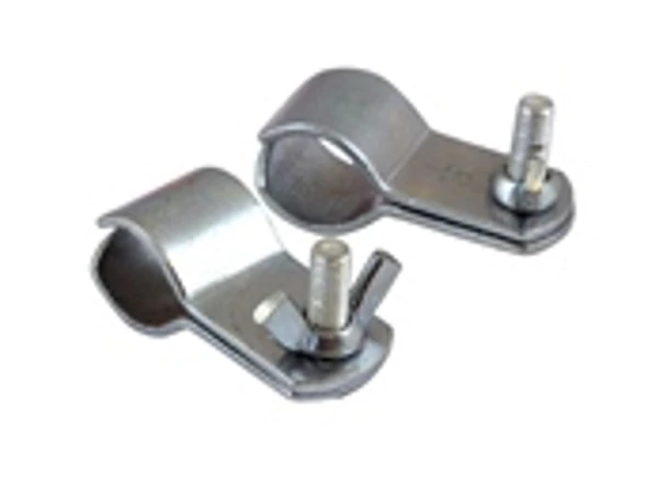 Kétnyelves szorítóbilincs csavarral és szárnyas anyával, 25-28 mm átmérőjű rudazathoz, (oszlop vagy gerinc csatlakozása a kerethez).