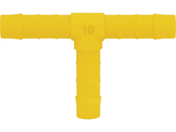 Vízcső összekötő elem, T-idom, 12 mm belső átmérővel, sárga színben.