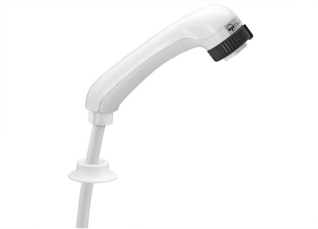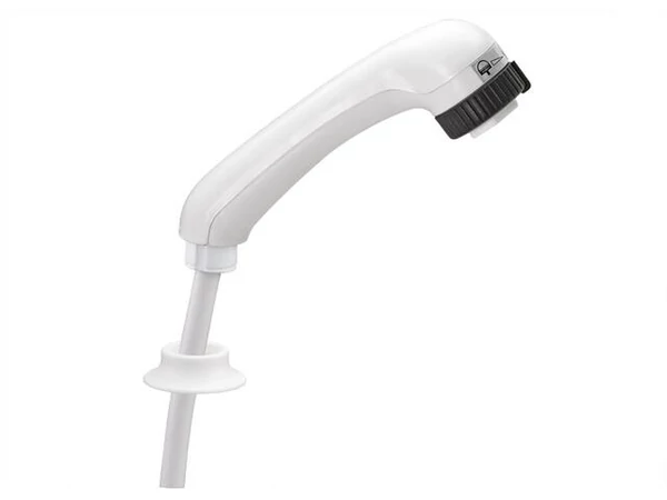 De Luxe zuhanyfej háromfokozatos szeleppel. A gyűrű forgatásán keresztül lehetőség van a zuhany sugarának beállítására is. A víz mennyisége szintén szabályozható. Maga az armatúra akár falitartóra is felszerelhető.