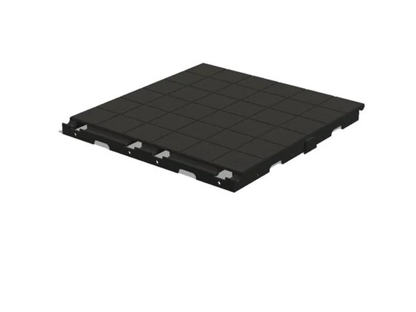 A letelepített kempingjárművek elé, vagy hosszú távon kialakított tartózkodóhoz műanyag lapokból összeállítható padozat. Egyenletesen vízszintes felületet ad, jól véd a nedvesség és a hideg talaj ellen. Szerszám nélkül egyszerűen letelepíthető. Egymásba illeszkedő fogakkal biztosítja a rögzítést. Igen hosszú élettartam, nagy stabilitás és csekély tömeg jellemzi.