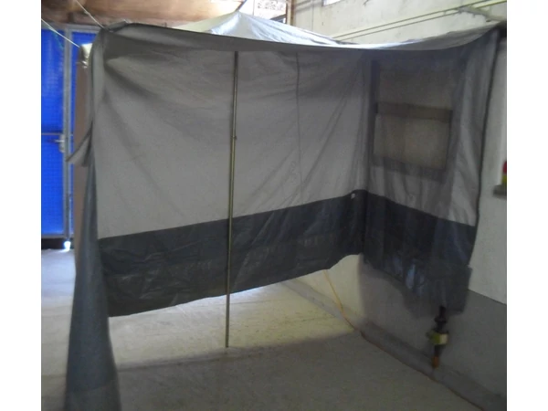 Használt, de jó állapotú sátorfülke ponyva. Az Erker az elősátor oldalsátra, kibővítése, a lakótér megnöveléséhez, hálófülke elhelyezésére szokták alkalmazni. A fülke színe:szürke, az egyik oldalán ablak található. Az ár nem tartalmazza a rudazatot!