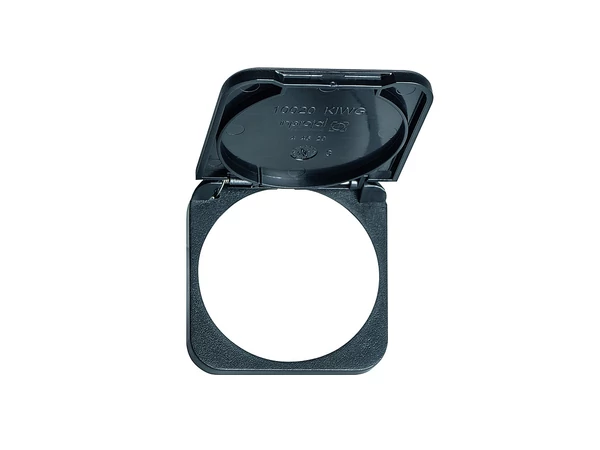 Fekete színű, rugós záródású védőfedél FAWO típusú csatlakozóaljzatokhoz, fokozott biztonság érdekében.
