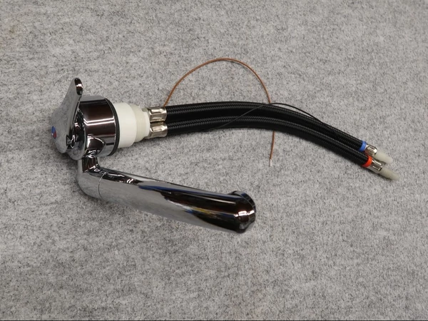 Egykaros hideg-meleg vizes keverő csaptelep, krómszínű kivitel műanyagból. A kifolyócső lehajtható, ezért alkalmazható üveglappal ellátott mosogatókhoz. A kifolyócső 90º-ban elforgatható.