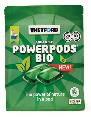 Az új, innovatív mikroorganizmus-technológián alapuló PowerPods® Bio a természet erejét használja fel a szagközömbösítő hatás kifejtésekor. A hasonló csomagolása és kezelése mellett a legjobban teljesítő zöld termék a piacon. A 20 adagos csomagolás 80 napra elegendő hatást kínál felhasználójának. A zárt emésztőkbe is üríthető tartály praktikus szempont lehet a felhasználási körülményekben. 2022-től érhető el a szaküzletekben a környezettudatos fogyasztók számára!