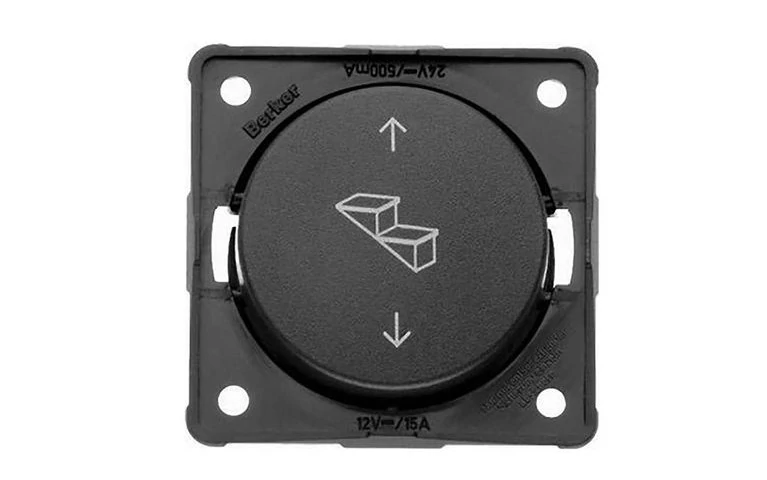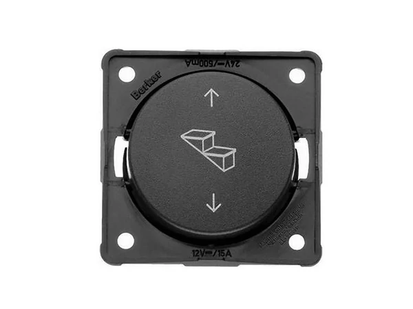 Antracit színű beépíthető váltókapcsoló Berker Integro rendszerhez, 12V/230V hálózatokhoz.