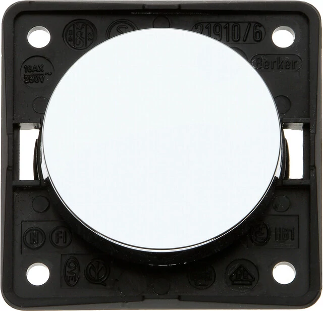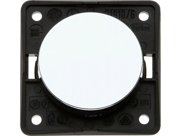 Modern matt króm váltókapcsoló Berker Integro kivitelben, ellenáll a karcolásoknak és az UV-nak.