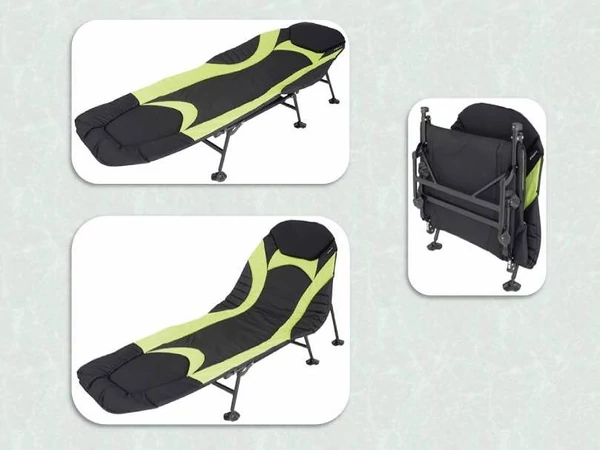 Puha, párnázott kempingágyunk megjelenésében az elegáns fekete szín uralkodik, amibe a világoszöld minták élénk játékosságot visznek. A formatervezett ágy a pihentető alváshoz vagy a délutáni sziesztához egyformán tökéletes. Használata 120 kilogrammig ajánlott, mérete: 200x72x32 centiméter. Hordozótáskával adjuk, melybe könnyen elcsomagolható, az ágy ugyanis összehajtható.