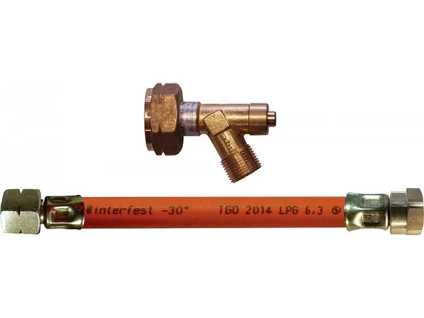 Nagynyomású tömlő 75 cm-es és szerelvények, csatlakozás: 45º x ÜM-M20 x 1,5. Télálló -30 ºC.
