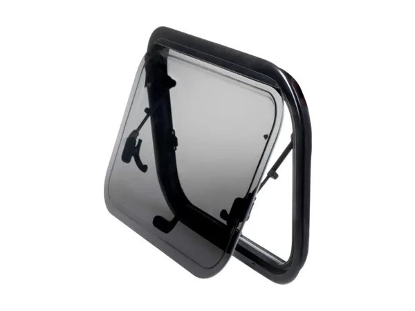 1450 x 550 milliméteres oldalablak sötétített dupla akril üvegezéssel. Az ablak komplett, azaz rolóval és szúnyoghálóval szerelt. Fokozatmentesen nyitható.