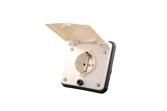 Külső fedeles aljzat, 230 V, bézs árnylatban.