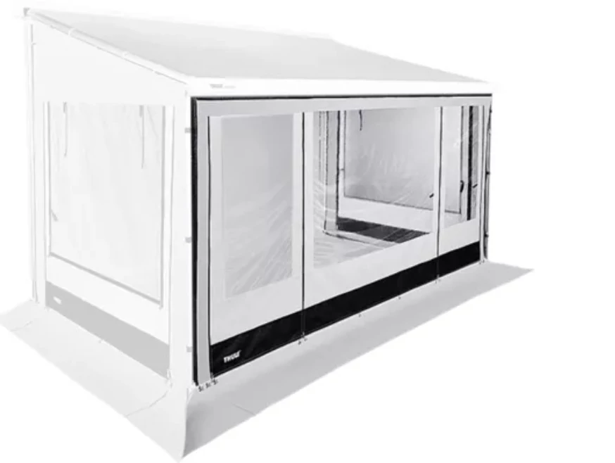Egyszerűen felszerelhető panel nagy ablakokkal Thule Omnistor naptetőkhöz. Széltől és esőtől is védelmet nyújt - a nyitható ablakok pedig szúnyoghálóval szereltek.