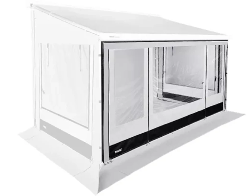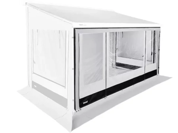 Thule Omnistor naptetőkhöz előfal szél és eső ellen, nagy ablakokkal. Egyszerűen felszerelhető, kiváló minőségű PVC-szövetből készült.