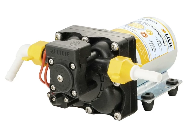 Nyomáskapcsolóval működtetett 12 V-os vízpumpa. Egy régóta forgalomban lévő típus továbbfejlesztett változata. Induláskor felveszi a folyadékot és rövid ideig a szárazon futást is elviseli.