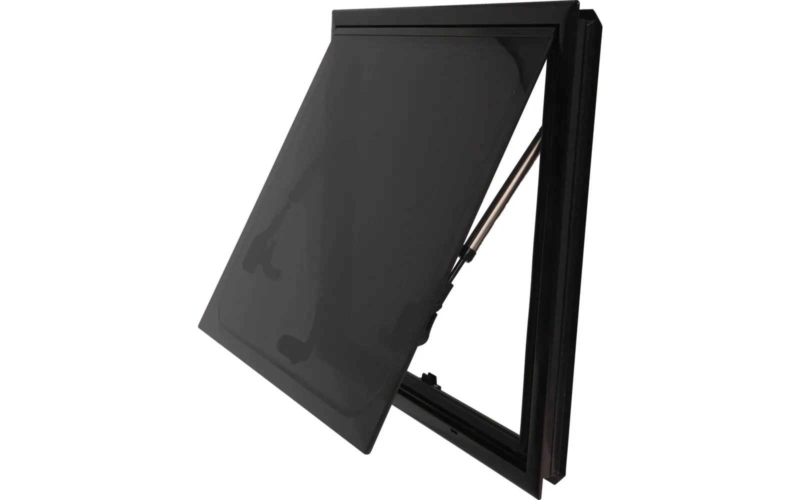 450 x 500 millimétes méretben kapható oldalablak. Beszerelhető 25-65 milliméteres falvastagságig fúrás nélkül. Több pozícióban nyitható, masszív alumínium kerettel és sötétített, UV-álló üvegezéssel.