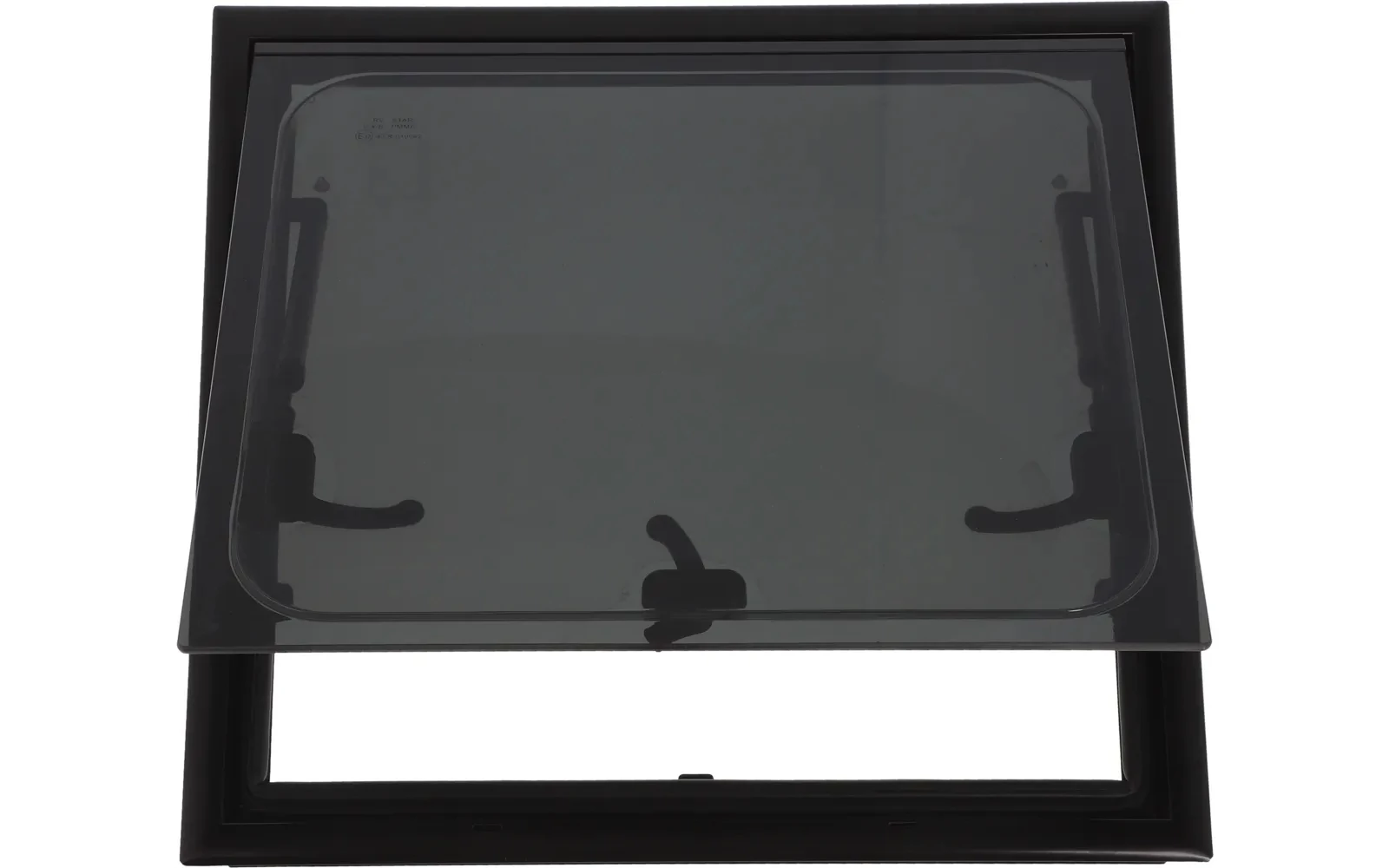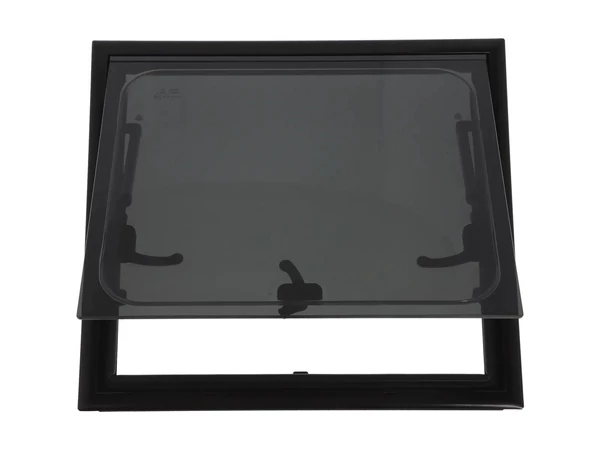 800 x 450 milliméteres oldalablak UV-álló dupla üvegezéssel. Masszív alumínium kerettel, több pozícióban nyitható és jó szigetelést/megfelelő kilátást biztosít. Fúrás nélkül beszerelhető.
