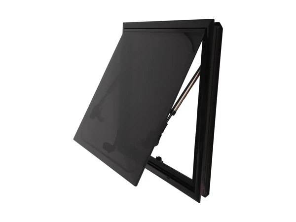 900 x 450 milliméteres oldalablak UV-álló dupla üvegezéssel. Masszív alumínium kerettel, több pozícióban nyitható és jó szigetelést/megfelelő kilátást biztosít. Fúrás nélkül beszerelhető.