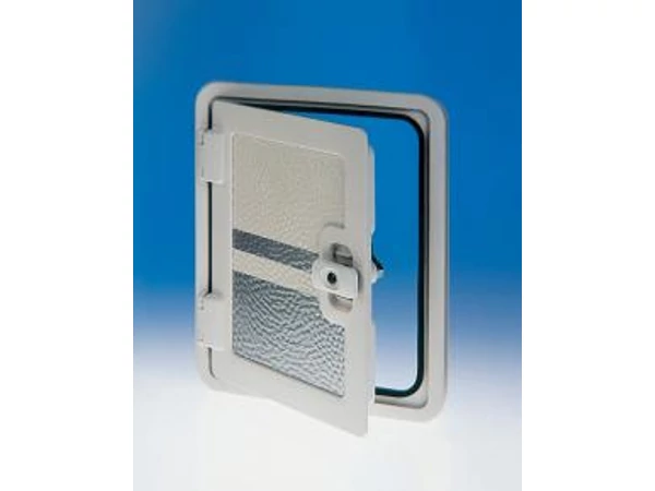 Szervizajtó 375 x 305 mm kivágási méret, 335 x 265 nyíló méret.