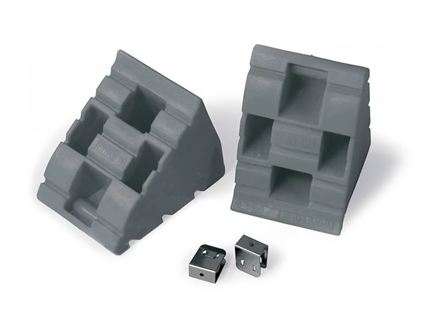 Szintezőék, szürke. Blokkolja a kerekeket hosszabb leállásnál. Megfelelő kiegészítője a Level Up, Level Pro és Level System Magnum szintezőknek. A lépcsőzetes kialakítású szintezőékre felhajtva, a kialakított menetbe illesztve, megtartja a járművet, így nem kell behúzni a kéziféket.