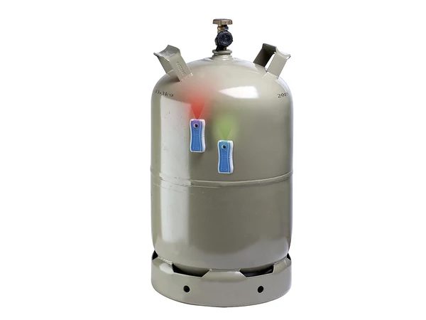 Gázmennyiség mérő acél gázpalackhoz. Helyezze a mérőt a palack különböző pontjaira a hátoldalán található mágnes segítségével. A LED kijelző vörösről zöldre vált, illetve fordítva a töltöttségi szinttől függően. Elemmel működik.