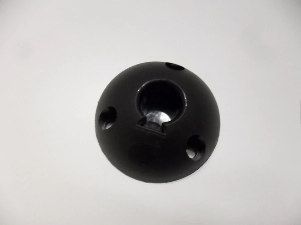 Fali sínbe akasztható asztalokhoz, a pálcás asztalláb rögzítésére szolgáló, félgömb alakú tartó, műanyagból.