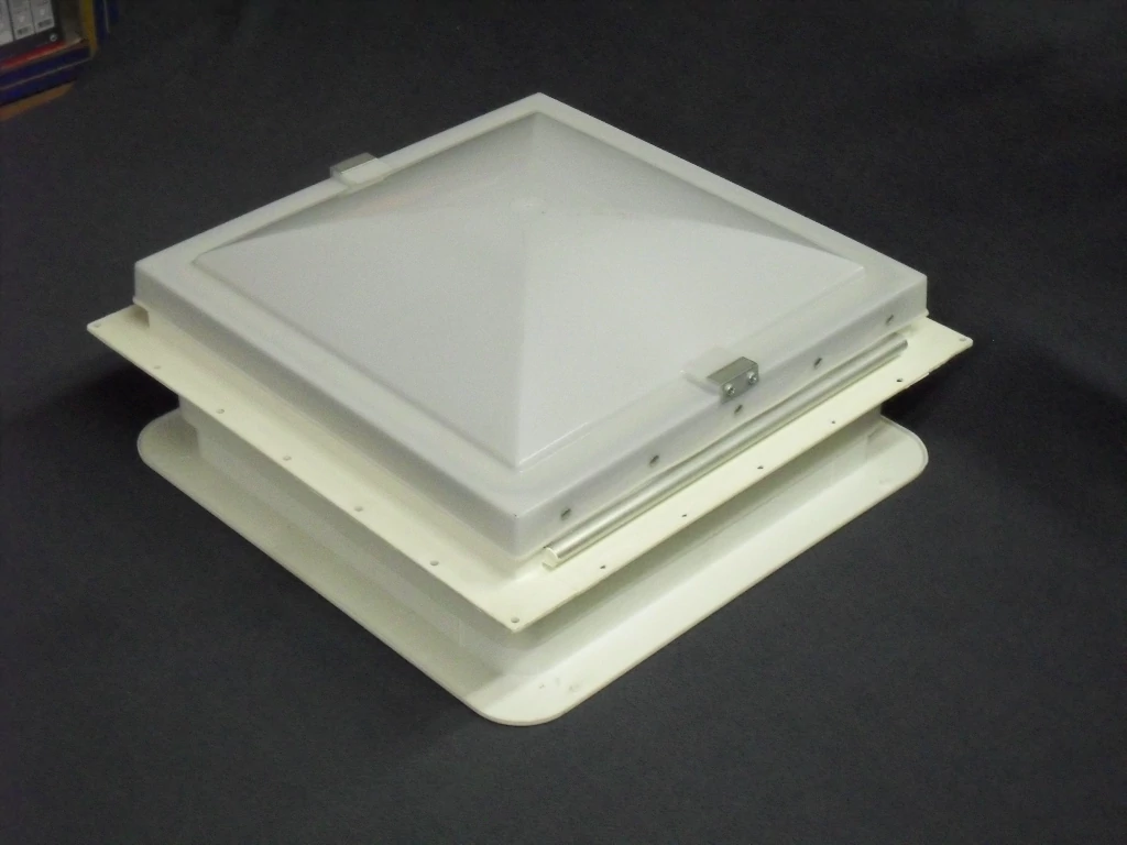 Kényszerszellőzéssel kialakított változat, fehér műanyagból, tejszínű burkolattal.