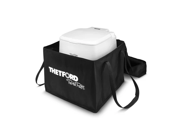 Praktikus és esztétikus fekete Thetford tároló táska mobil toaletthez. A két fogantyús táska biztosítja a toalett kényelmes szállítását. A táska sima belső oldalbevonatának köszönhetően egyszerűen tisztán tartható, illetve mosógépben mosható 40°C-on. Anyaga: PVC, erős cipzáros záródás. Alkalmas: Porta Potti 165, 365 és 565 hordozható toaletthez Mérete: 450 x 450 x 450 mm