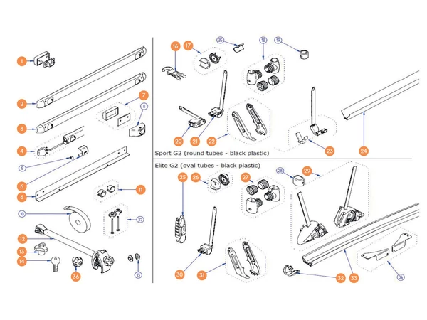 Thule Sport G2 & Elite G2 kerékpártartó alkatrészek: