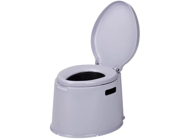 Környezetbarát hordozható vödrös toalett szürke színben, fedéllel. A fedéllel lecsukható vödör kb. 7 literes. Méretei: 40 x 33 x 48 cm (szé x ma x mé), csomagméret: 49 x 35 x 40 cm, tömege: 2,4 kg, csomagolt tömeg: 3,4 kg. Teherbírás: max. 100 kg.