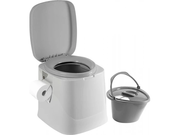 Környezetbarát hordozható vödrös toalett szürke színben, fedéllel, wc-papírtartóval. A fedéllel lecsukható vödör kb. 7 literes. Méretei: 41.5 x 43 x 39 cm (szé x ma x mé), tömege: 2,4 kg, csomagolt tömeg: 3,4 kg. Teherbírás: max. 100kg.